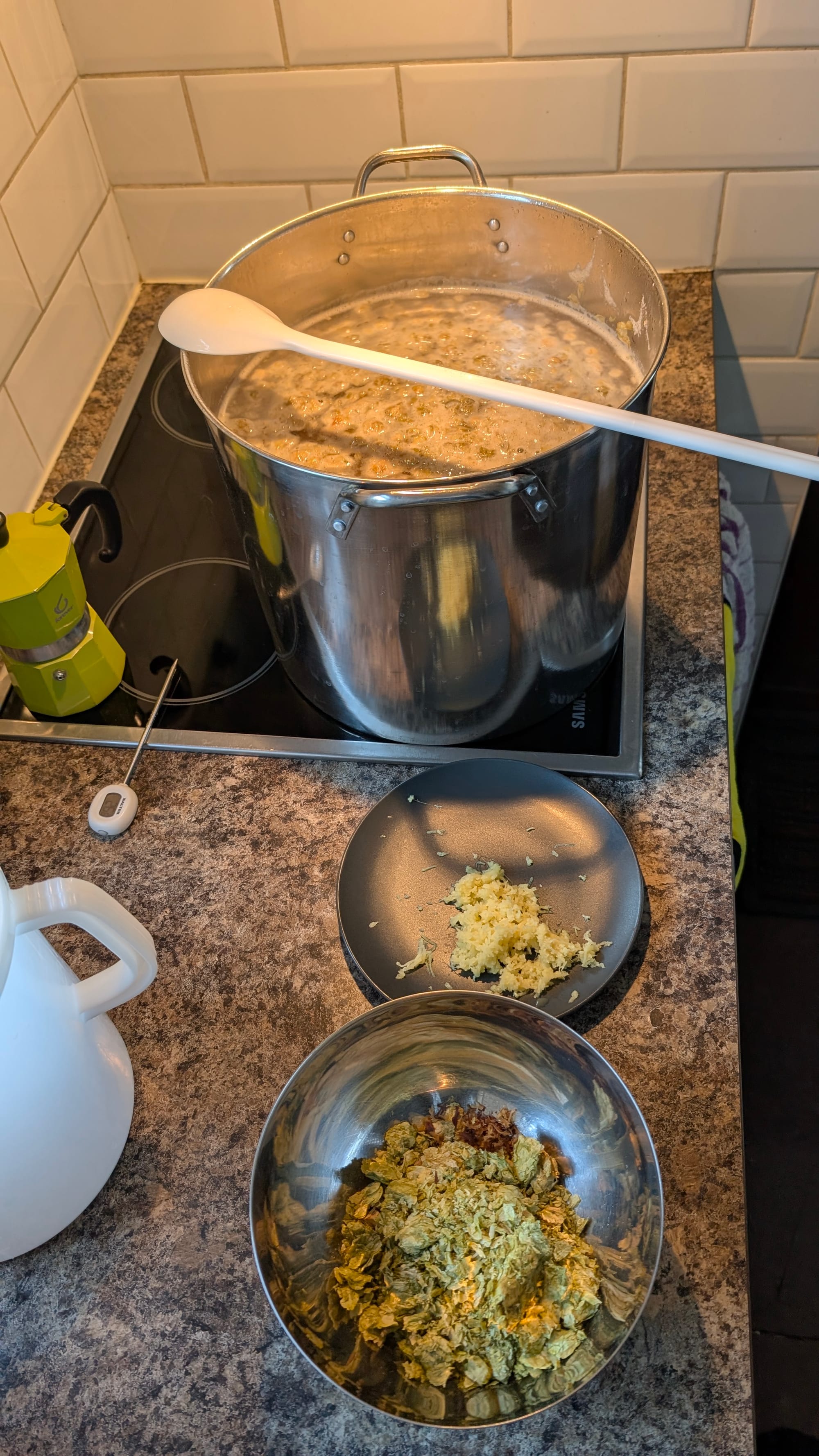 Imbieras ir medus skamba kaip gera Kalėdinio alaus kombinacija. Tuo pačiu įdėjom šaukštelį Airiškų samanų kad alus gautūsi skaidresnis.