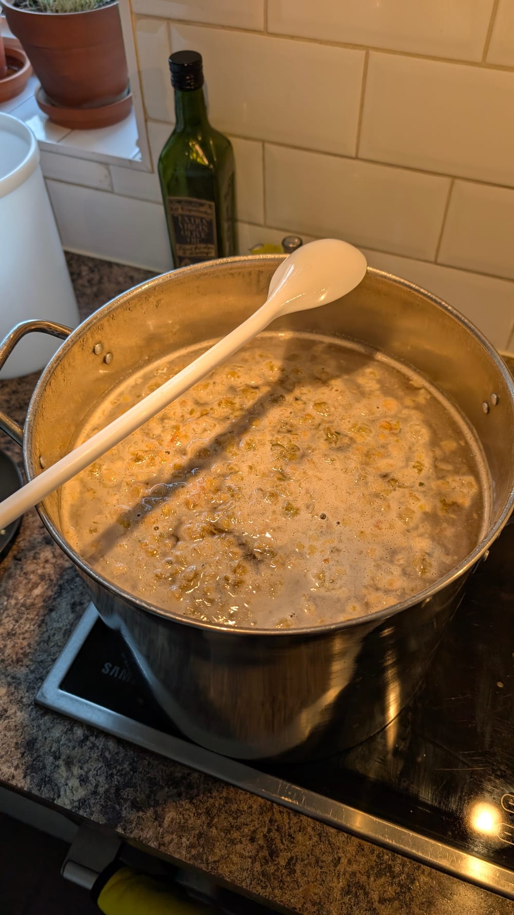 Receptas neturėjo gerų instrukcijų tai pasidarę su chatgpt nusprendėm daryt antrinį fermentavimą su medum. Kol mielės dar aktyvios ištirbdinti medų šiltam vandeny ir supilti į fermentavimo kibirą.